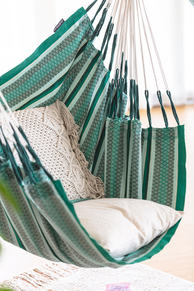 A Habana Agave függőfotel fantasztikusan kényelmes és tágas, organikus pamut anyagból készült - a súlytalanság érzetét biztosítja. A függőfotel hatalmas méretének köszönhetően nem csupán ülve kényelmes, de fekve is nagyszerűen használható. Anyaga lágy tapintású, puha organikus pamut, ugyanakkor igen könnyen tisztítható. A Habana függőfotel GOTS tanúsítvánnyal rendelkezik, így garantáltan környezetbarát és egészségre ártalmatlan anyagokkal kezelt alapanyagokból készült. A nagyszámú zsinórzat a kolumbiai függőszékek általános jellemzője. A súlyeloszlás használat közben optimális a függőfotel a zsinóroknak köszönhetően maximális kényelmet nyújt, miközben igen strapabíró. A textil megerősített szélei nagy szakítószilárdságot biztosítanak a függőfotelnek. A beépített biztonsági forgószem biztonságos 360 fokos elforgást tesz lehetővé. A távtartó rúd csúcsminőségű bambuszból készült, amely nem csak vonzó küllemű, de rendkívül erős és vízálló. Emellett az sem elhanyagolható, hogy a függőágy fa alkotóelemei felelős erdőgazdálkodásból származnak(FSC®).